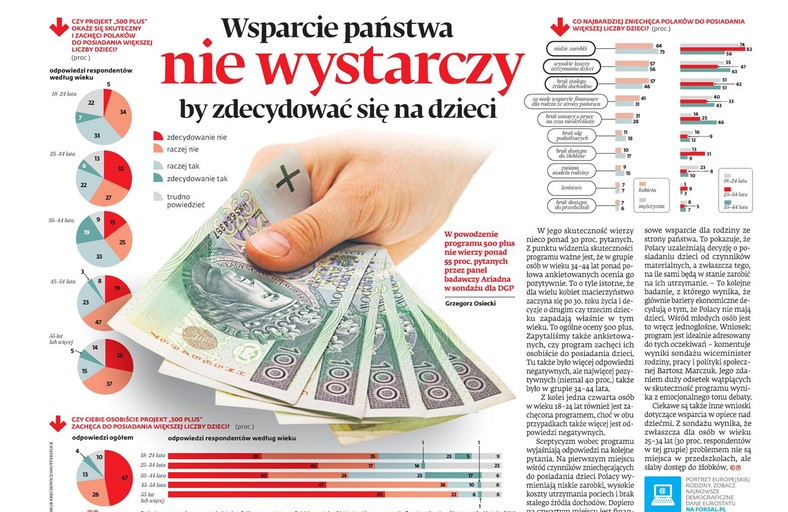 Innego zdania jest prof. Janusz Czapiński, który przyznaje, że wsparcie finansowe to jeden z elementów, który przyczyniłby się do wzrostu dzietności. Z prowadzonej przez niego Diagnozy Społecznej wynika, że aż 40 proc. badanych z powodów materialnych decydowało się nie powiększać rodziny. Boją się oni nie tylko pogorszenia swojej sytuacji, ale także tego, że nie będzie ich stać na utrzymanie rodziny czy też zachowanie osiągniętego już poziomu życia. Nie znaczy to jednak, że nasz rozmówca w pełni popiera model 500+. – Aby ten program zadziałał, powinno się płacić dopiero na dzieci narodzone po jego wejściu w życie. Byłaby to silna motywacja i wymagałaby mniejszych środków. Nawet zakładając 10-procentowy wzrost dzietności w pierwszym roku, koszt dla budżetu wyniósłby 210 mln zł – wskazuje prof. Czapiński.