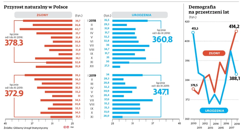 Jednak dodaje, że należy zauważyć pewien plus – i tak urodziło się więcej dzieci, niż by wynikało z analiz GUS z 2014 r., który projektował dane demograficzne na kolejne lata. W 2017 r. urodziło o 50 tys. więcej, w 2018 r. o 40 tys. więcej, a w 2019 r. prawdopodobnie będzie o 20 tys. – Nie mamy jeszcze pełnych, ale i tak będzie to więcej, niż zakładano – mówi dr Urszula Wróblewska.