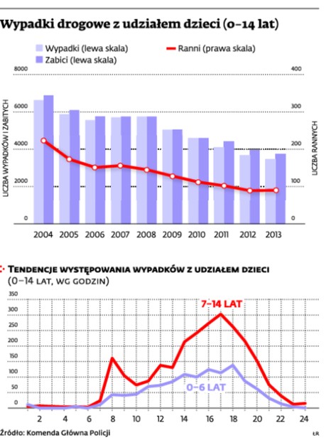 Na edukację najmłodszych stawia też policja. – My uczymy już przedszkolaków, jak poruszać się po drodze, jeździć rowerem czy zachowywać się na przejściach dla pieszych – wyjaśnia Mariusz Sokołowski, rzecznik prasowy KGP. – Kampanie edukacyjne kierujemy nawet specjalnie do dzieci, by to one wpływały na swoich rodziców. To się opłaca i przynosi efekty, ponieważ wypadków jest coraz mniej. Podstawową kwestią jest też bowiem to, by rodzice zrozumieli, że to oni odpowiadają za bezpieczeństwo najmłodszych – podsumowuje Sokołowski.