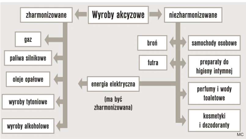 W Polsce ustawowo określone zostały górne granice stawek podatku akcyzowego dla poszczególnych grup wyrobów. Wykaz wyrobów akcyzowych został określony w ustawie o podatku akcyzowym, która rozróżnia wyroby akcyzowe zharmonizowane – paliwa silnikowe, oleje opałowe i gaz, napoje alkoholowe oraz wyroby tytoniowe i niezharmonizowane. Do wyrobów akcyzowych niezharmonizowanych należą wyroby akcyzowe inne niż wyroby akcyzowe zharmonizowane (np. futra, broń palna, kosmetyki, perfumy i dezodoranty, karty do gry).