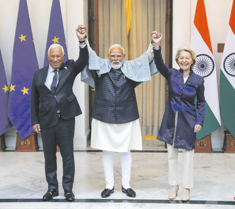 „Europa i Indie tworzą dziś historię” – z dumą ogłosiła przewodnicząca Komisji Europejskiej Ursula von der Leyen. Dodała, że „to dopiero początek”. I trudno się nie zgodzić, zważywszy, że wartość handlu między Indiami a UE wyniosła w ostatnim roku fiskalnym 136,5 mld dol., podczas gdy między Indiami a USA 132 mld dol., zaś między Indiami a Chinami 128 mld dol. Z kolei wartość handlu między UE a Stanami Zjednoczonymi to nieco ponad 1 bln dol., a z Chinami 850 mld dol., co stanowi odpowiednio 17 i 15 proc. handlu Unii z resztą świata. Przed tandemem europejsko-indyjskim jest więc jeszcze bardzo długa droga, jeśli ten kierunek miałby realnie zrównoważyć znaczenie dotychczasowych przepływów i powiązań.