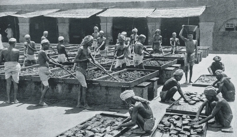 „Przez całe wieki w Indiach obróbka uprawianego chałupniczo maku była zajęciem domowym, zazwyczaj zostawianym kobietom (podobnie jak inne prace domowe i większość niedomowych). Główną część produkcji przeznaczano na potrzeby rodziny – było to typowe lekarstwo na wszelkie codzienne dolegliwości, a także na wybuchającą sporadycznie cholerę. Mniejsze ilości przeznaczano na lokalny rynek” – opisuje Dormandy.