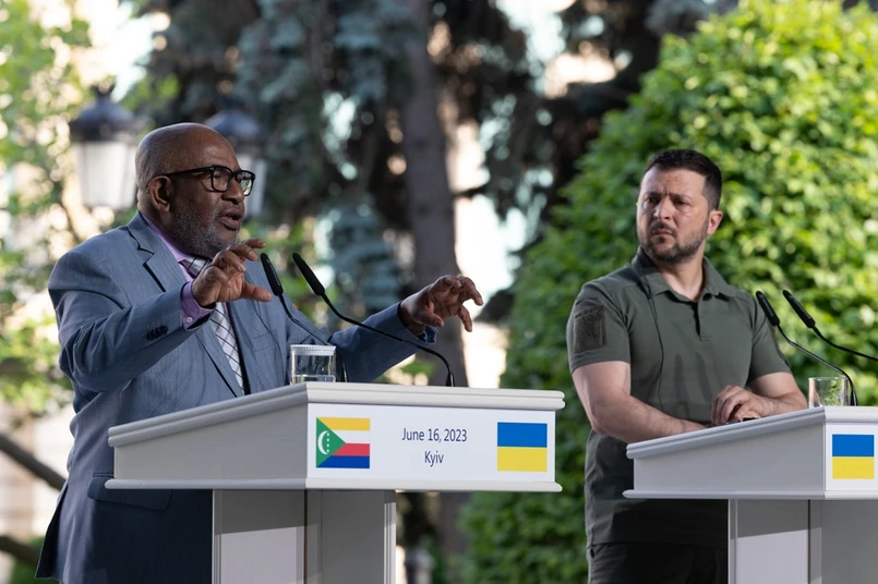 Azali Assoumani nie był sam. Przywódcy Komorów, który zarazem pełni funkcję szefa Unii Afrykańskiej, w podróży do Kijowa i Petersburga towarzyszyli prezydenci RPA, Senegalu i Zambii, premier Egiptu oraz niżsi rangą urzędnicy z Konga i Ugandy. Ostatecznie pięciu przywódców zaproponowało Wołodymyrowi Zełenskiemu i Władimirowi Putinowi plan, którego szczegółów nie znamy, ale który opierał się na założeniu wstrzymania ognia, wycofania wojsk, wymiany jeńców (wraz z porwanymi przez Rosjan dziećmi), ograniczenia sankcji na Rosję, wycofania się przez trybunał w Hadze z nakazu aresztowania Putina i gwarancji dla utrzymania eksportu zboża i nawozów.