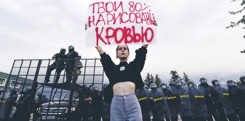 A potem przyszedł 9 sierpnia 2020 r. Cichanouska zdobyła najpewniej większość głosów, ale Łukaszenka nie zamierzał tego uznać i ogłosił własne zwycięstwo. Jego rywalka nie zamierzała zbyt głośno protestować. Wbrew reżimowej propagandzie Majdan jej się nie śnił. To ludzie wyszli na ulice w sposób nieskoordynowany, chaotyczny i bez planu – i zostali brutalnie spacyfikowani. Tortury na komendach nie uśmierzyły gniewu i mimo agresji wciąż wychodzili na ulicę. Próżnię organizacyjną próbował zająć telegramowy kanał Nexta, kierowany z Warszawy przez Sciapana Puciłę, proponując trasy i metody protestu. Brak koordynacji i wrodzona niechęć społeczeństwa białoruskiego do użycia siły sprawiły, że reżim wytrzymał nokdaun, taktycznie się wycofał, policzył się i uderzył w bardziej zdecydowany i przemyślany sposób.