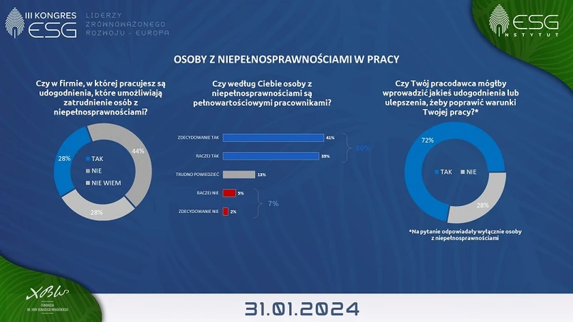- 31 stycznia 2024 r. w Warszawie odbędzie się III Kongres ESG – Liderzy Zrównoważonego Rozwoju – Europa. W centrum uwagi znajdą się sprawy społeczne, a więc „S”, w tym relacje pracodawców z pracownikami i wyrównywanie szans osób z niepełnosprawnościami.