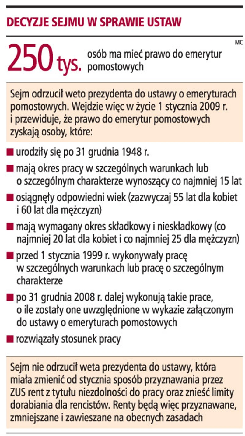 Zawetowana przez prezydenta ustawa z 17 października 2008 r. o zmianie ustawy o emeryturach i rentach z Funduszu Ubezpieczeń Społecznych oraz niektórych innych ustaw przewidywała, że od nowego roku całkowicie zmieni się sposób ustalania wypłacanych przez