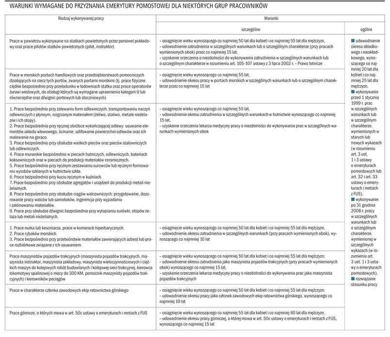 Warunki wymagane do przyznania emerytury pomostowej dla niektórych grup pracowników