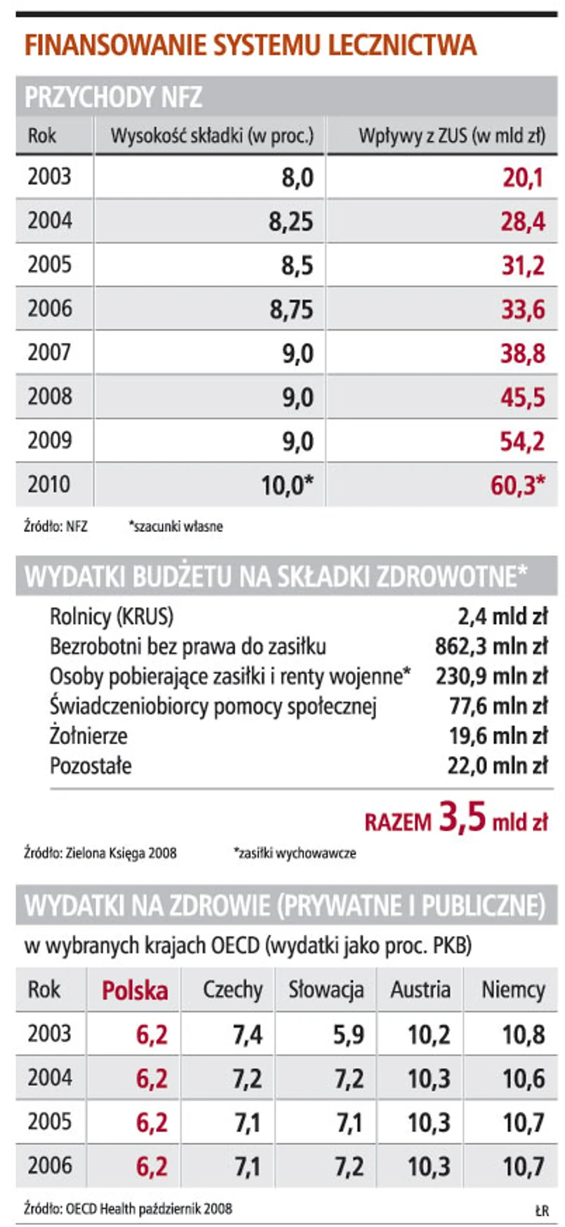 Wzrost składki zdrowotnej oznacza dodatkowe środki na leczenie. Dzięki jej podwyżce w 2010 roku do Funduszu ma wpłynąć dodatkowo 6,1 mld zł. Zdaniem ekspertów, szacunki rządu mogą okazać się jednak zawyżone, bo już teraz wyraźnie widać, że kryzys gospodarczy spowodował spadek ściągalności składki zdrowotnej. W ostatnich dwóch miesiącach 2008 roku, po raz pierwszy od pięciu lat,