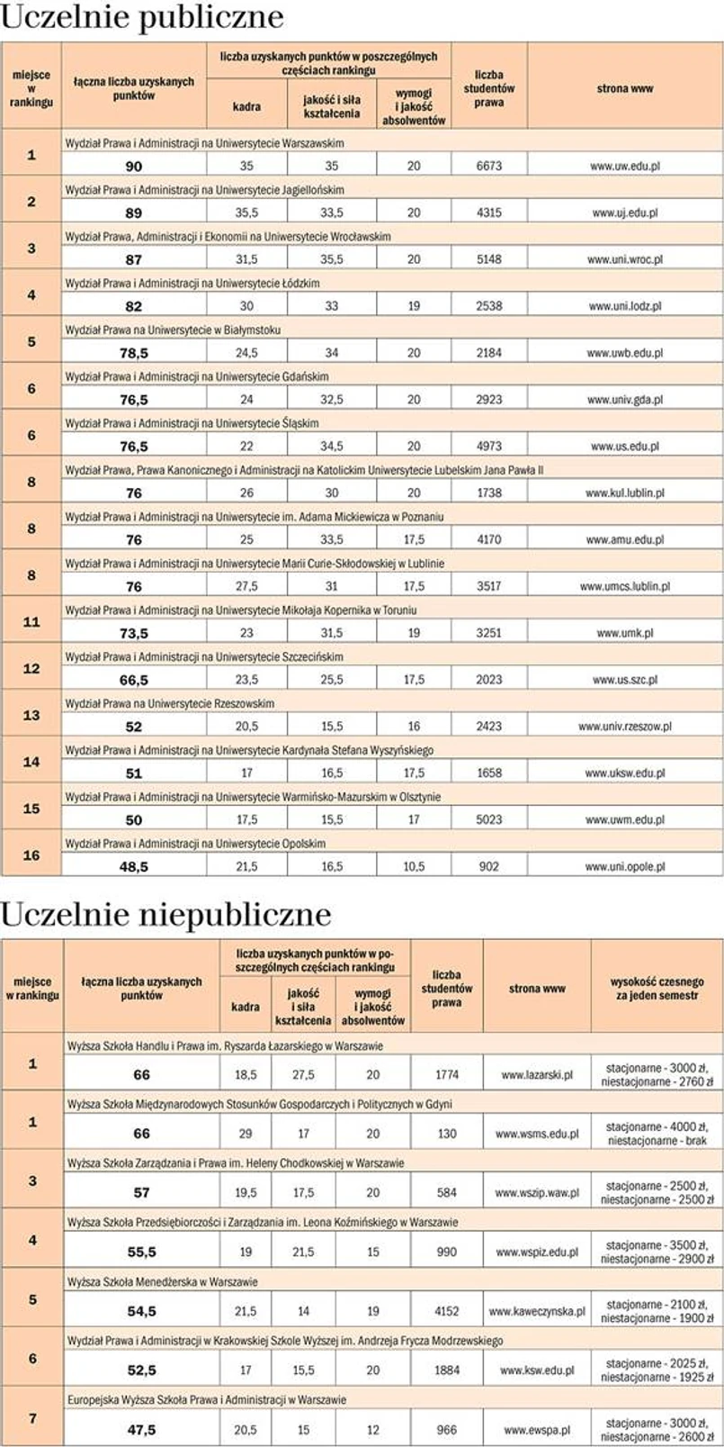 W rankingu braliśmy pod uwagę 39 różnych danych. Można było uzyskać maksymalnie 100 punktów, z czego 40 punktów za kadrę, 40 za jakość i siłę kształcenia oraz 20 za wymogi stawiane studentom i jakość absolwentów.