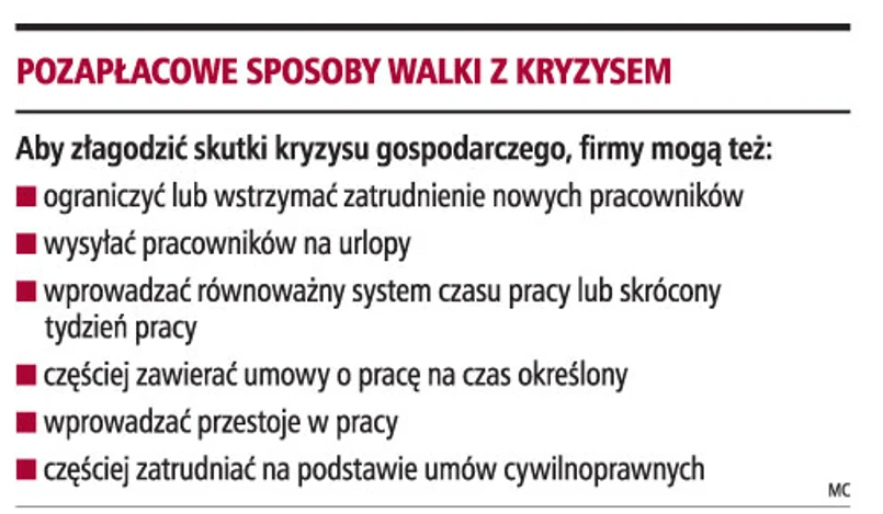 - Wymiar czasu pracy i redukcja płac mieści się w pojęciu warunków zatrudnienia. Nic nie stoi więc na przeszkodzie, aby firmy już teraz za zgodą pracowników obniżały im czas pracy i wynagrodzenie - mówi dr Monika Latos-Miłkowska z Wydziału Prawa i Administracji Uniwersytetu Warszawskiego.