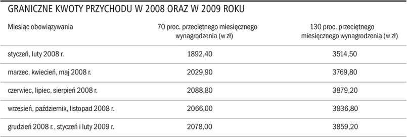 Graniczne kwoty przychodu w 2008 oraz w 2009 roku