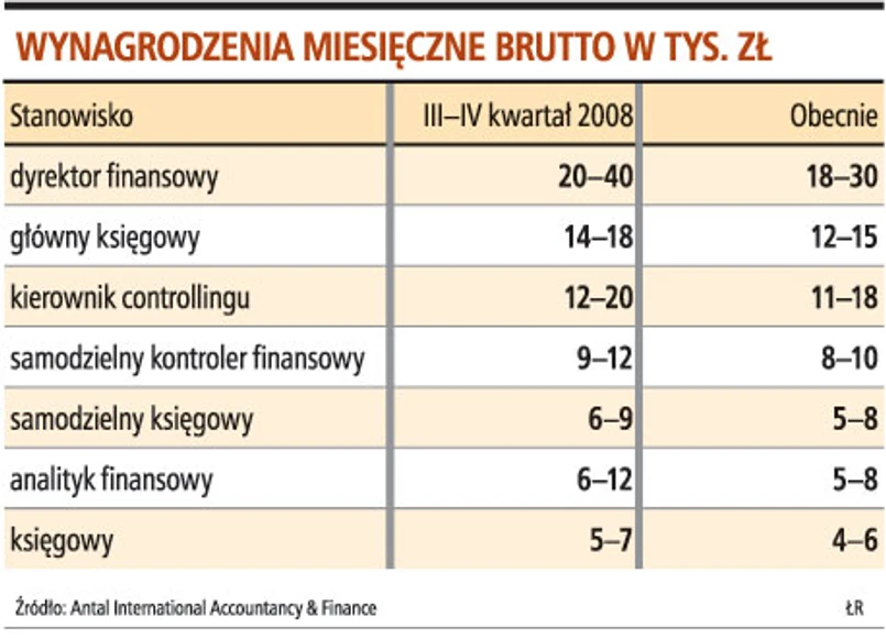 Wraz z tym poprzeczka oczekiwań płacowych poszła w dół. Pensje w sektorze finansowo-księgowym od początku tego roku spadły już średnio od 10 do 15 proc.