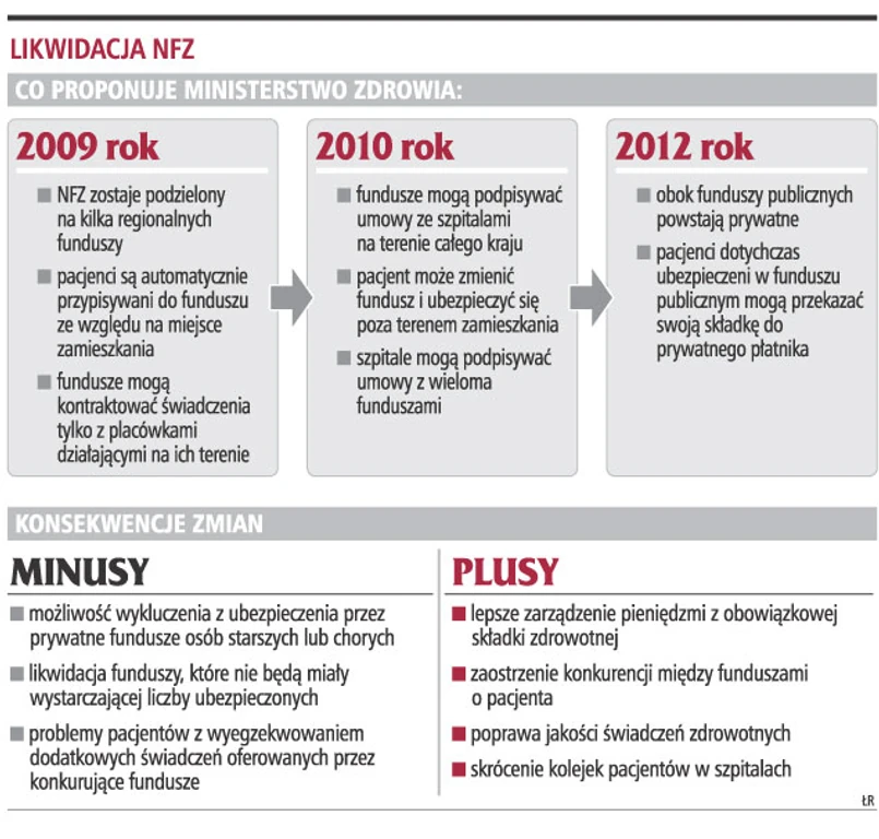 Ostatnim etapem likwidacji NFZ ma być wprowadzenie na rynek w 2012 roku, obok publicznych funduszy, ich prywatnych odpowiedników. To, zdaniem ekspertów, wprowadzi prawdziwą konkurencję na rynku usług medycznych.