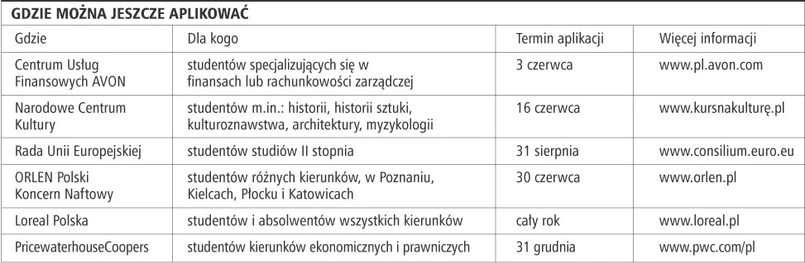Firmy zwracają też uwagę na to, czy kandydat potrafi rozwiązywać problemy. Student filozofii, historii czy politologii może okazać się specem od marketingu. Urzędy zwykle szukają studentów administracji, prawa, ekonomii i marketingu. Z wybranymi kandydatami pracodawcy przeprowadzają rozmowy kwalifikacyjne, czasami także każą im rozwiązywać testy.