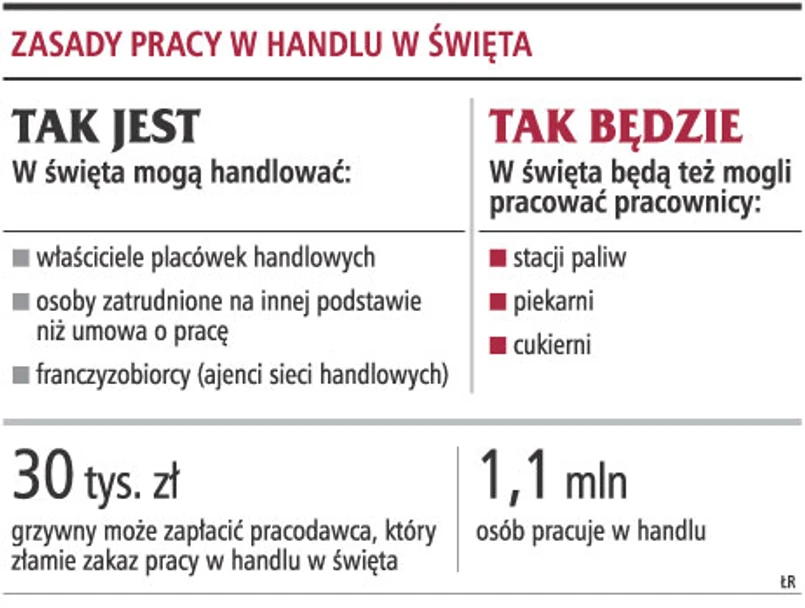 Podwładni nie będą już jednak mieli takiego prawa, jeżeli posłowie poprą senacki projekt nowelizacji k.p. Stacje obok piekarni i cukierni znajdą się bowiem na liście placówek, których zakaz pracy w handlu w święta nie obowiązuje. Uchwaleniu noweli nie będzie sprzeciwiał się rząd.