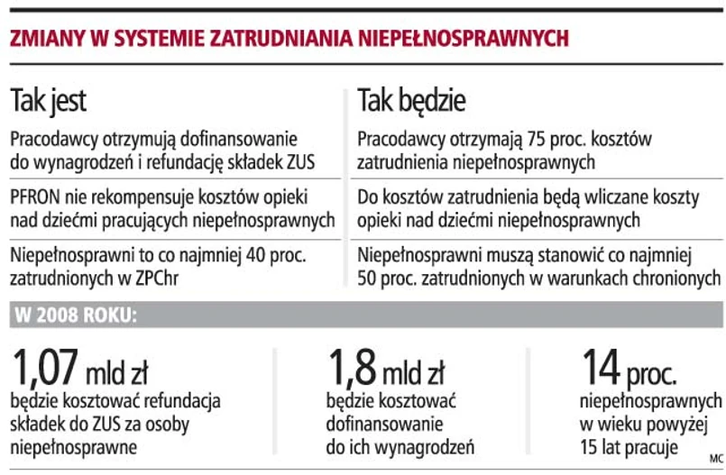 Firmy, które już zatrudniają niepełnosprawnych, obawiają się, że nie będzie im przysługiwać pomoc z PFRON, bo projekt rozporządzenia nie precyzował, czy należy jej udzielać tylko za nowo zatrudnionych niepełnosprawnych, czy także tych, którzy już pracują.
