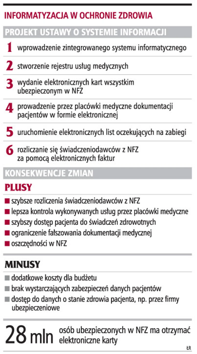 A dzięki karcie zniknąłby na przykład problem związany z udowadnianiem w placówkach medycznych, że pacjent ma prawo do świadczeń zdrowotnych. Obecnie wymaga to przedstawienia np. druków z ZUS albo podstemplowanej legitymacji ubezpieczeniowej.