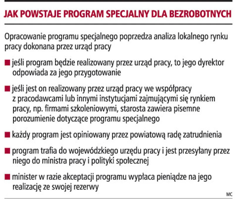 W niektórych powiatach są realizowane programy specjalne organizowane samodzielnie przez urzędy pracy lub we współpracy z pracodawcami i firmami szkoleniowymi. Od 1 lutego programy te są skierowane do bezrobotnych i poszukujących pracy, czyli m.in. pracowników, którzy są w okresie wypowiedzenia.