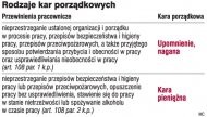 W przypadku dopuszczenia się przez pracownika uchybień wymienionych w tabeli pracodawca może zastosować wobec niego kary porządkowe - upomnienie, naganę i karę pieniężną. Wynika to z art. 108 k.p.