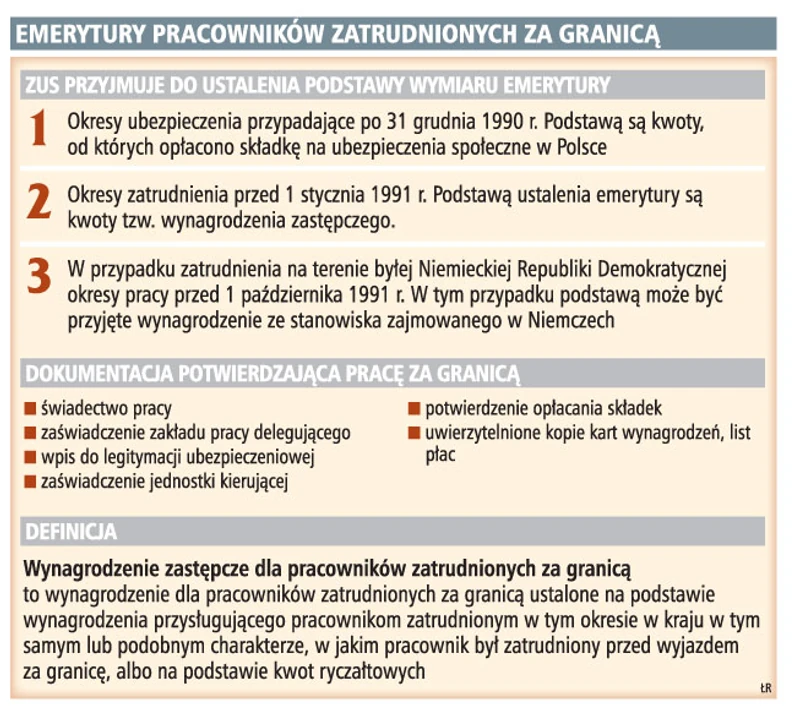 Przepisy stanowią, że za okresy zatrudnienia za granicą przypadające do 31 grudnia 1990 r. do ustalenia podstawy wymiaru przyjmuje się tzw. wynagrodzenie zastępcze.
