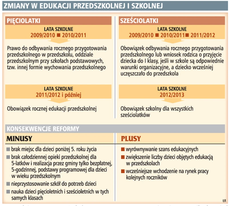 Jeszcze dwa lata mają szkoły i gminy, aby przystosować się do zmian. W tym czasie rodzice mogą wybierać i decydować, w jakim systemie, do ukończenia sześciu lat, będzie kształcić się ich dziecko. Od 2011 roku wejdzie w życie obowiązek rocznego przygotowania przedszkolnego dla 5-latków, a rok później naukę w I klasie rozpoczną sześciolatki.