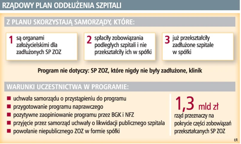 Plan B, jeżeli jego realizacja się powiedzie, rozwiąże jednak problemy tylko części szpitali. Zdaniem ekspertów skorzystają z niego przede wszystkie placówki małe, powiatowe, które mają stosunkowo niewielkie zadłużenie. Szpitale wojewódzkie, wielospecjalistyczne i dodatkowo obarczone wysokimi długami raczej do programu nie przystąpią, bo ich organów założycielskich nie będzie stać na ich przejęcie.