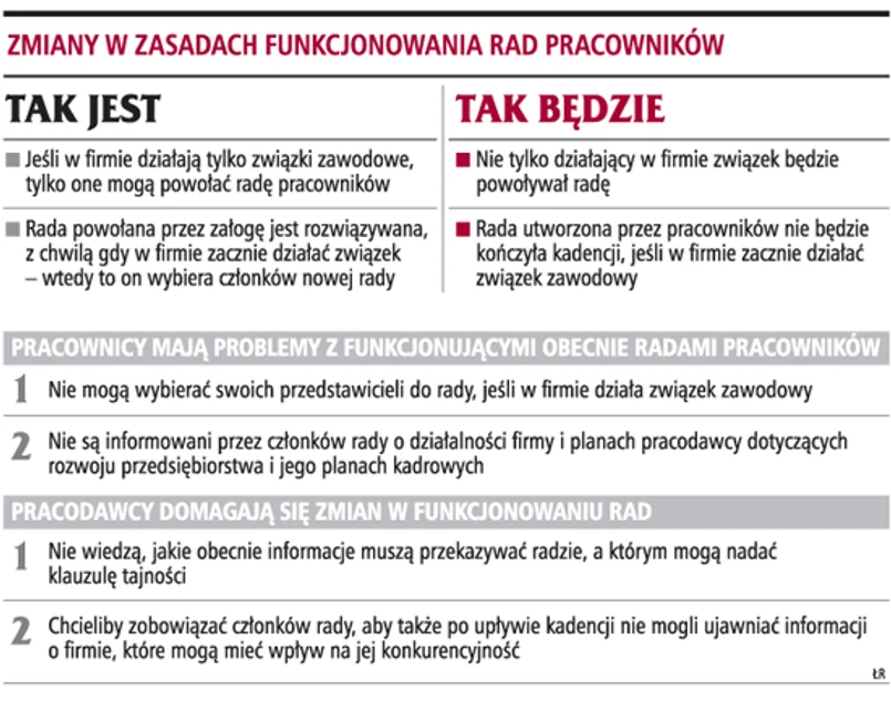 przepisów jest niezgodna z konstytucją. Jednak wyrok TK, który miał rozwiać wątpliwości, przyczynił się do powstania kolejnych. Eksperci, pracodawcy i pracownicy nie wiedzą m.in., czy radę nadal mogą tworzyć związki czy już wyłącznie sami pracownicy. Problemem wciąż jest także przepływ informacji w firmie.
