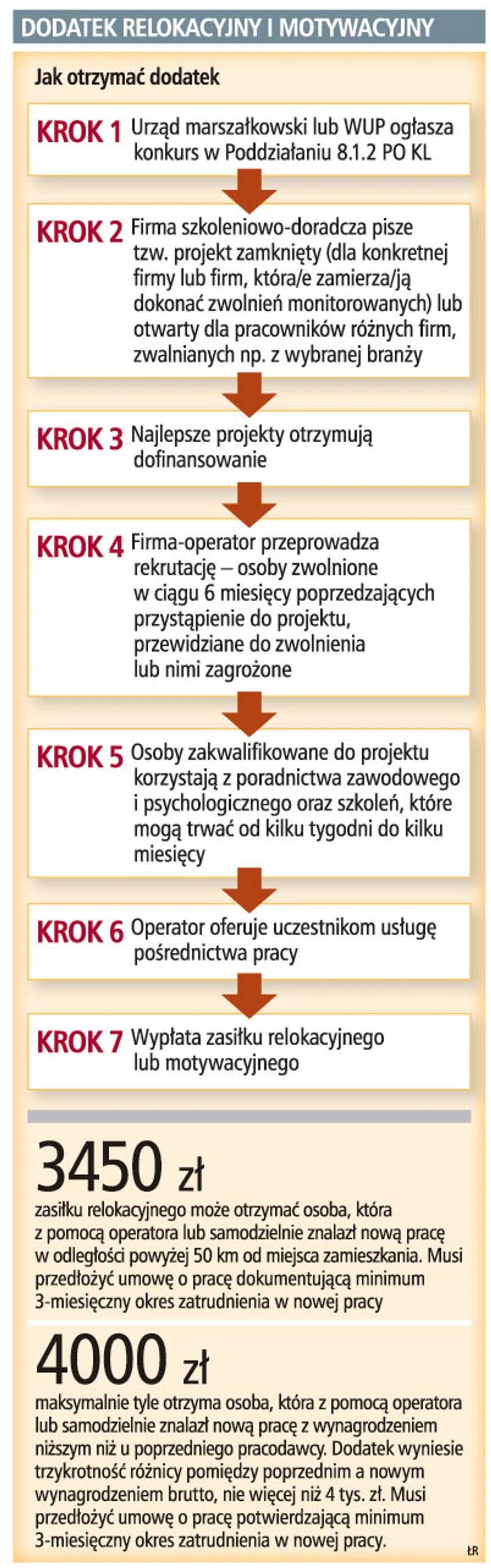 Dopiero, gdy takie osoby rozpoczną szkolenia, będzie im można wypłacić stypendium szkoleniowe w wysokości 4 zł za godzinę. Realne wsparcie w formie np. dodatku relokacyjnego otrzymają dopiero na zakończenie projektu, gdy znajdą pracę.