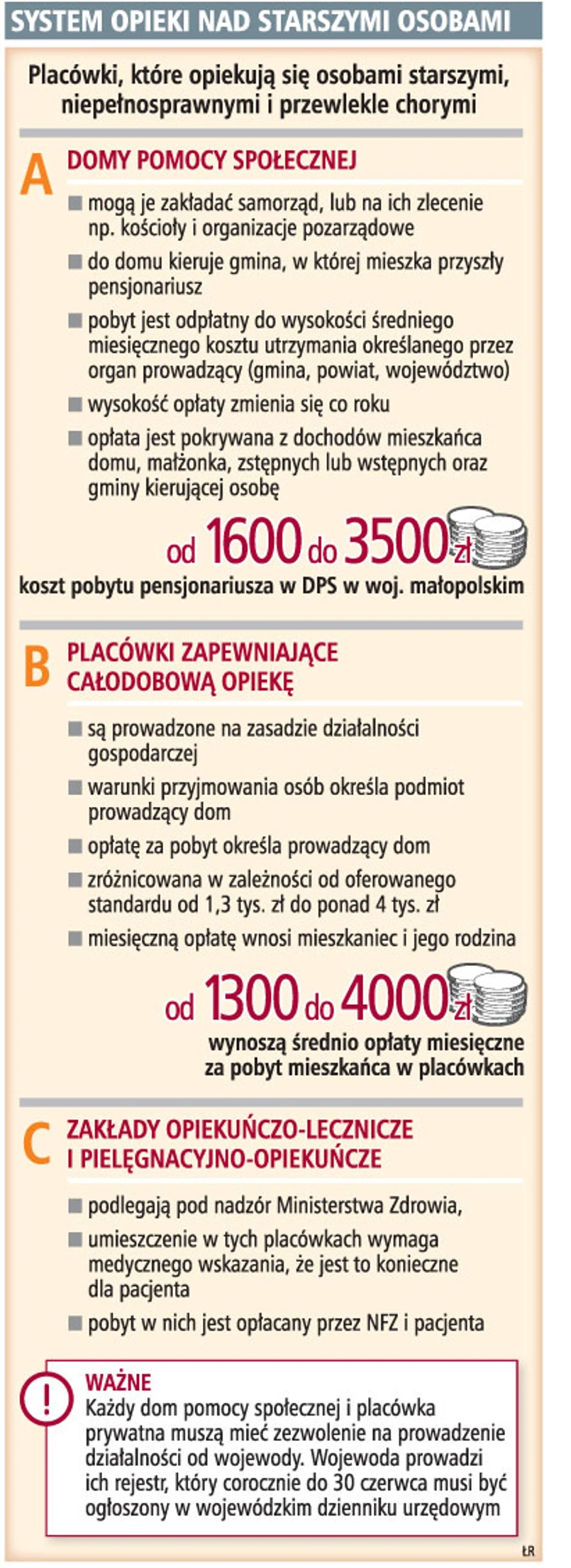 Alternatywą dla publicznych DPS są placówki zapewniające całodobową opiekę dla starszych osób. Obecnie działa ich 125, przebywa w nich ponad 3,2 tys. mieszkańców. Przy czym rozmieszczenie tych placówek nie jest równomierne. W woj. mazowieckim jest ich 36, w woj. pomorskim 13, a w woj. świętokrzyskim tylko 4.