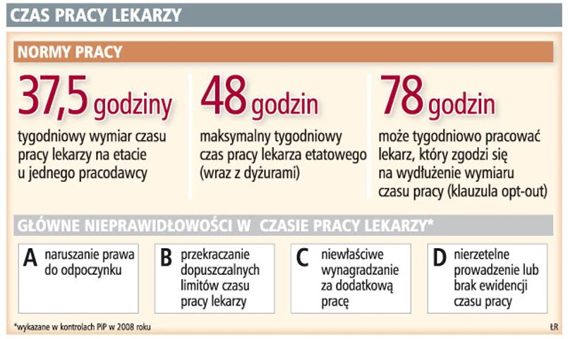 Lekarze nie muszą udowadniać, że doznali uszczerbku na zdrowiu, domagając się zadośćuczynienia za pracę ponad limit. Dyrektorzy szpitali obawiają się, że ostatni wyrok Sądu Najwyższego spowoduje wzrost liczby pozwów cywilnych lekarzy. Nie chcąc łamać przepisów o czasie pracy, dyrektorzy szpitali namawiają specjalistów do przechodzenia na kontrakty.