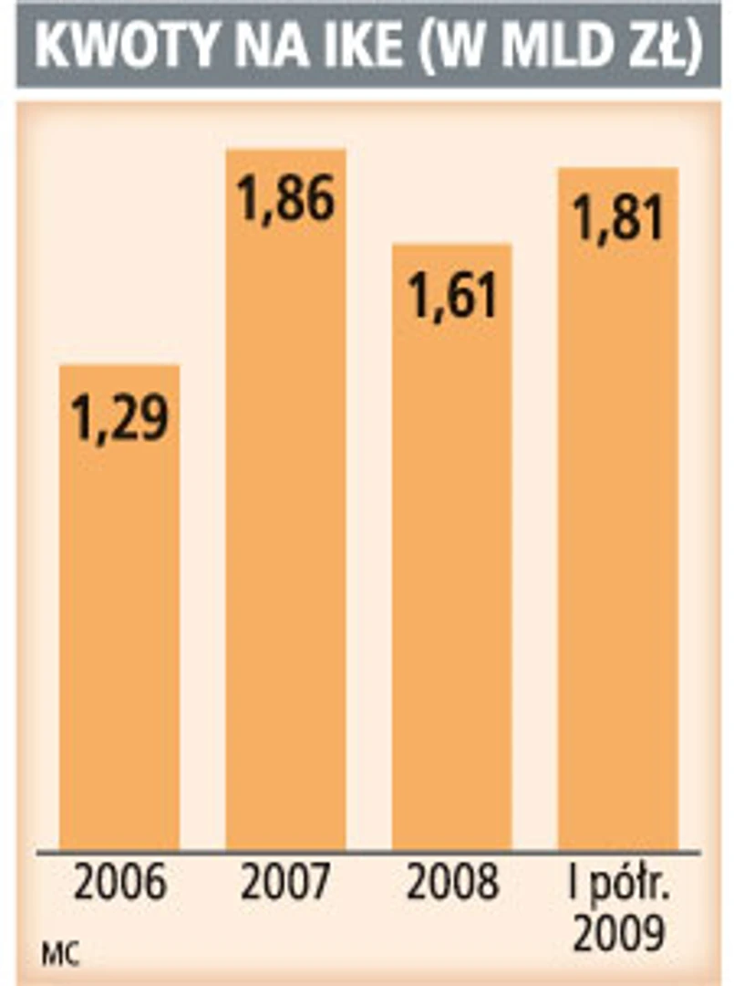 Spadek zainteresowania oszczędzaniem na IKE widać też dobrze na przykładzie liczby nowo otwartych kont. W ubiegłym roku takich kont było 51 tys., a w minionym półroczu – 19 tys. Niższa jest też średnia kwota wpłat do IKE. W I półroczu 2009 r. wyniosła 1071 zł, a w 2008 roku – 1561 zł.