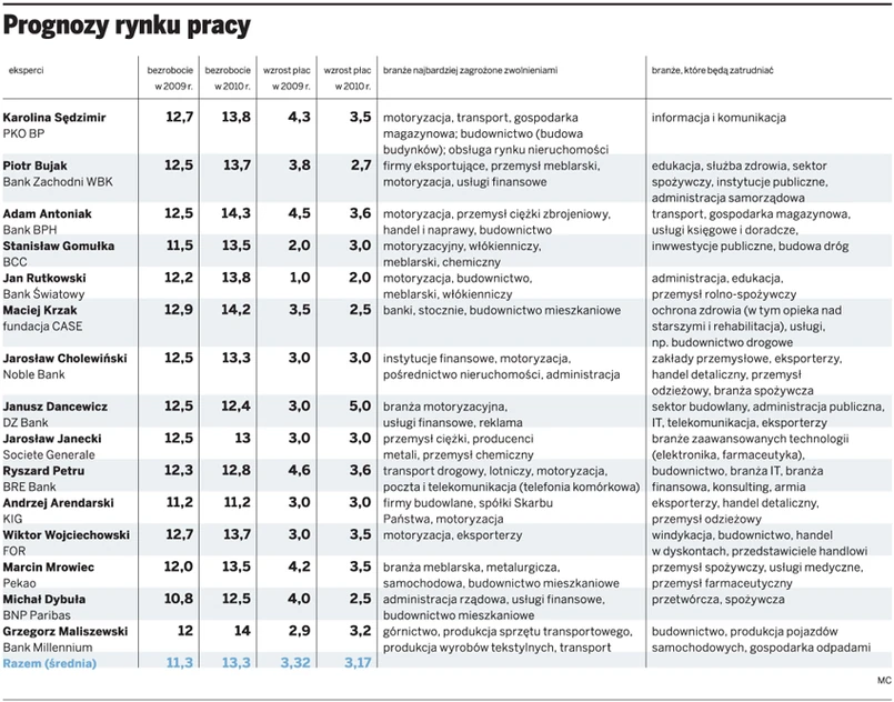 Eksperci uważają, że stopa bezrobocia rejestrowanego na koniec tego i przyszłego roku będzie wyższa niż obecnie (10,8 proc.). Do 11,3 proc. wzrośnie ona w grudniu 2009 roku, a na koniec 2010 roku – do 13,3 proc.