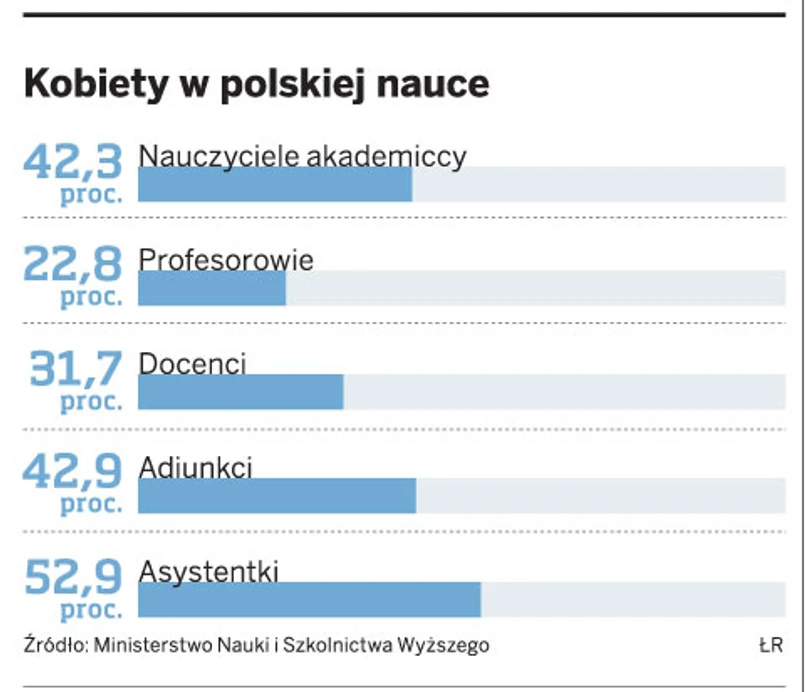 Kobiety stanowią obecnie 42,3 proc. polskiej kadry akademickiej. Liczba ta maleje jednak wraz ze wzrostem prestiżu tytułu naukowego. Na stanowiskach profesorskich pracuje tylko 22 proc. kobiet.