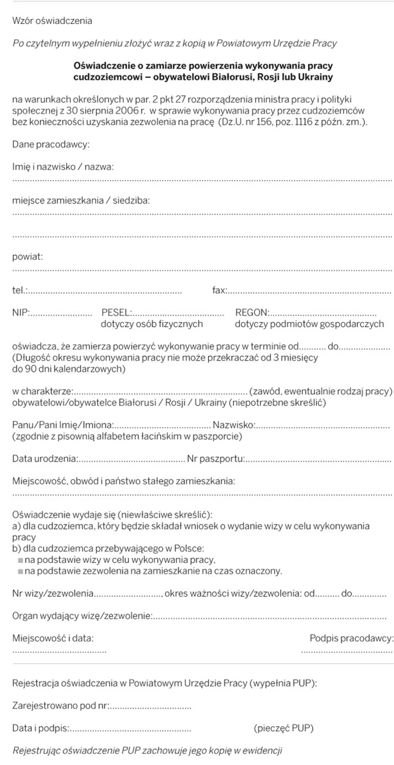 Warunkiem legalnego wykonywania pracy przez cudzoziemca jest posiadanie przez niego zezwolenia na pracę. Uproszczenie procedury z tym związanej, m.in. poprzez rezygnację z instytucji przyrzeczenia, skróciło okres oczekiwania na ten dokument. Nie zawsze jednak zezwolenie jest wymagane. Istnieje bowiem liczna grupa obcokrajowców, którzy mogą podejmować pracę w Polsce jedynie po zgłoszeniu tego faktu przez pracodawcę.