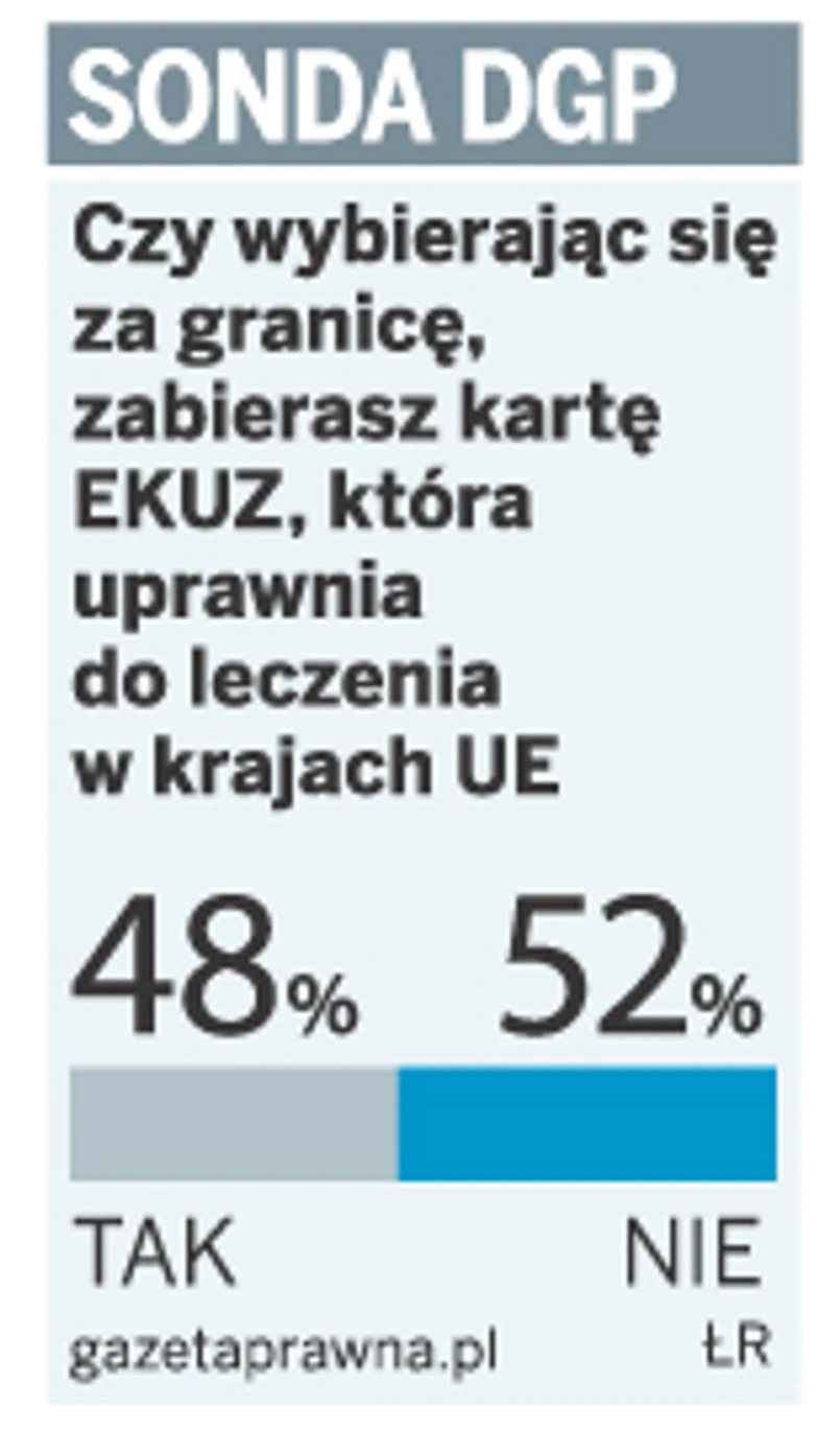 Do końca roku liczba wydanych kart EKUZ może przekroczyć milion. Daje ona prawo do bezpłatnych świadczeń w czasie pobytu czasowego (np. w trakcie urlopu) na terenie innego państwa