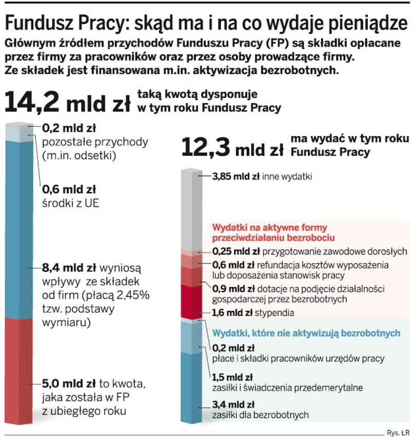 Eksperci są zgodni, że trzeba zmienić strukturę wydatków Funduszu Pracy (FP) i więcej pieniędzy przeznaczać na aktywne formy przeciwdziałania bezrobociu. Mniej wydawać więc na te instrumenty, które służą tylko tworzeniu miejsc pracy – na przykład na refundacje dla firm za doposażenie lub wyposażenie stanowiska pracy zatrudnionego przez nich bezrobotnego, czy dotacje na działalność gospodarczą. Więcej – na szkolenia, przygotowanie zawodowe dorosłych w firmach i staże.