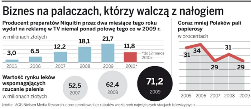 Reklamowe inwestycje najpopularniejszych środków dostępnych na naszym rynku bez recepty – Nicorette i Niquitin – były dwa razy większe niż w całym 2005 roku. Wtedy TVN, Polsat i TVP wyemitowały niewiele ponad 3 tys. reklam.