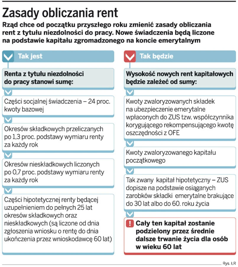 Rząd planuje, aby od 2011 roku zaczęły obowiązywać nowe zasady ustalania rent. Pracownicy będą mieć doliczany tzw. kapitał hipoteczny, liczony na podstawie składek. Do 2013 roku renty będą obliczane częściowo według starych, częściowo nowych zasad.