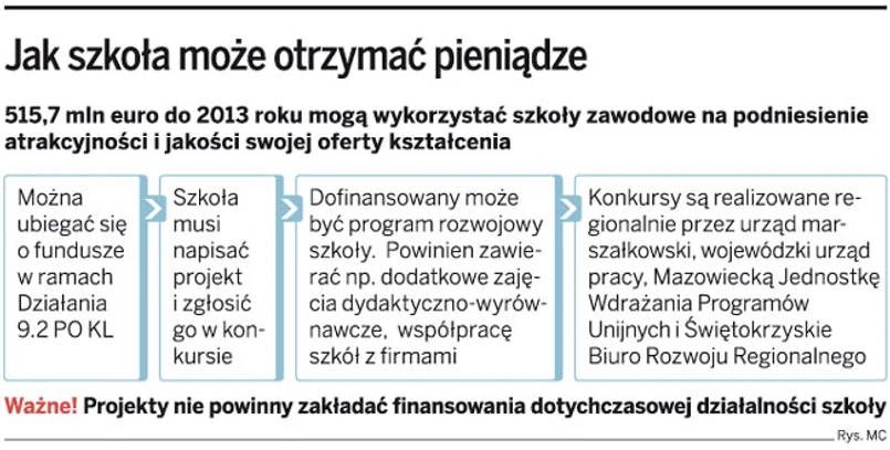 Barierą w unowocześnieniu infrastruktury dydaktycznej szkół jest również to, że tylko 10 proc. projektu, czyli zwykle mniej niż 100 tys. zł, można przeznaczyć na inwestycje. Nie wystarcza to na doposażenie szkół w najnowszy sprzęt.