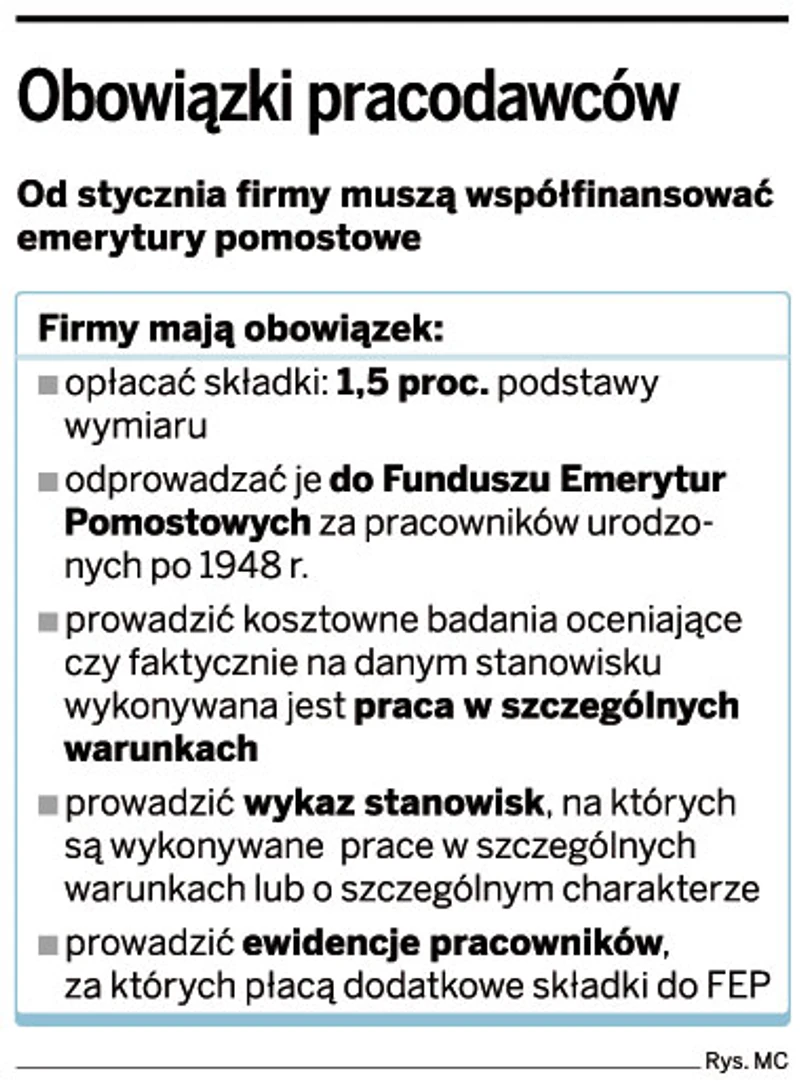 Ustawa z 19 grudnia 2008 r. o emeryturach pomostowych (Dz.U. nr 237, poz. 1656) wywołuje wiele emocji zarówno wśród pracowników, jak i pracodawców.