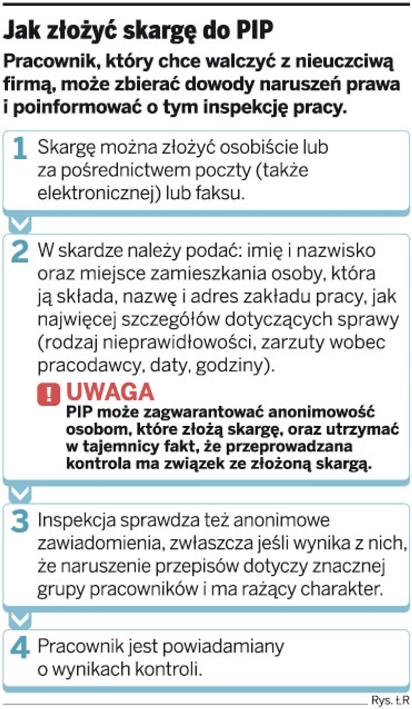 – Taką wiedzę zdobywa dopiero podczas wizyty u pracodawcy. Wcześniej nie może sprawdzać skarżących, bo pracodawca dowiedziałby się, kto złożył na niego skargę – mówi Anna Majerek, rzecznik Okręgowego Inspektoratu Pracy w Krakowie.