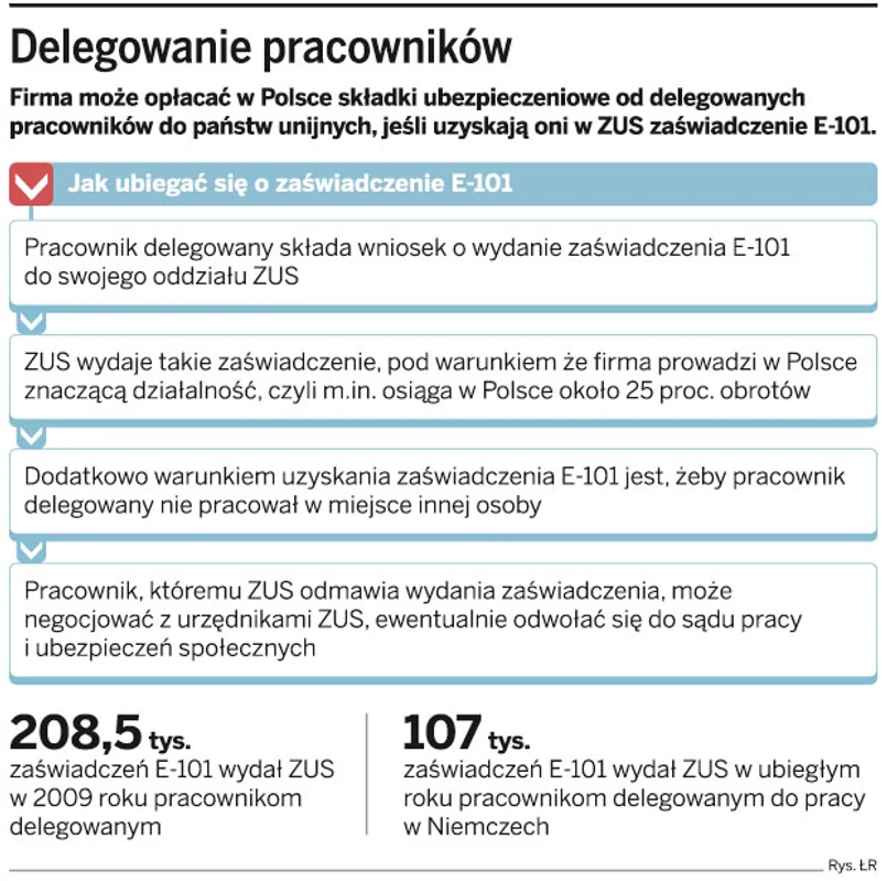 Od 1 maja 2010 roku zmieniły się przepisy o delegowaniu pracowników do państw unijnych. Podstawowe zasady dotyczące podlegania ustawodawstwu w czasie wykonywania pracy w innym państwie UE są zawarte w rozporządzeniu 883/2004 oraz rozporządzeniu wykonawczym 987/2009. Miały one doprecyzować zasady m.in. opłacania składek na ubezpieczenie społeczne za osoby wysłane do pracy za granicę. Zdaniem ekspertów to się jednak nie udało. Dlatego spory między firmami a ZUS o miejsce opłacania składek za pracowników delegowanych nie znikną.
