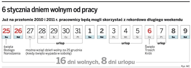7 dni wolnych w ciągu 10 lat uzyskają pracownicy z tytułu Święta Trzech Króli