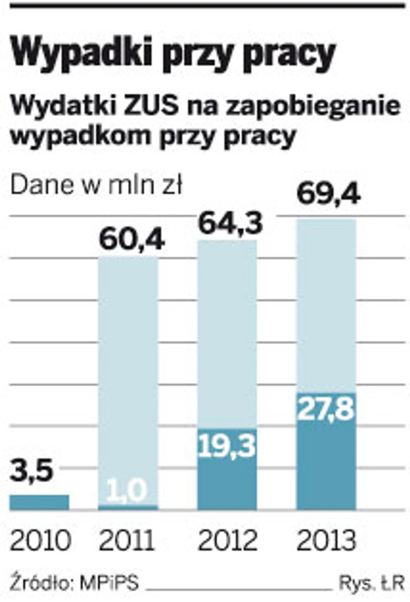 Według szacunków Ministerstwa Pracy i Polityki Społecznej (MPiPS) tzw. koszty społeczne wypadków, jakim ulegają pracownicy, mogą wynosić nawet 48 mld zł rocznie. Dodatkowym problemem jest to, że ich liczba rośnie. W 2005 r. poszkodowanych w wypadkach przy pracy było 84,4 tys. osób. W 2009 r. liczba ta wzrosła o kolejne 3 tysiące. Tylko w I kwartale tego roku liczba wypadków przy pracy przekroczyła 18 tys. W ubiegłym roku ZUS wydał na wypłatę rent wypadkowych 4,1 mld zł. Tylko jednorazowe odszkodowania (łącznie) kosztowały go 307,8 mln zł.