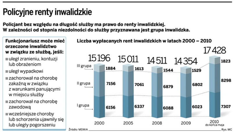 Mundurowi otrzymają rentę, chociaż pracować mogą. MSWiA, które przyznaje te świadczenia, nie bierze bowiem pod uwagę zdolności do pracy, lecz do służby.