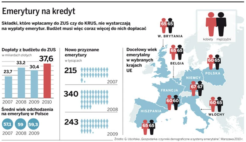 Jak wynika z danych ZUS, średnia wieku przechodzenia na emeryturę jest taka sama jak przed likwidacją części przywilejów. Trzeba więc ciąć dalej, i to szybko, na wzór UE. Ale minister Boni mówi: Nie ma potrzeby wprowadzania zmian