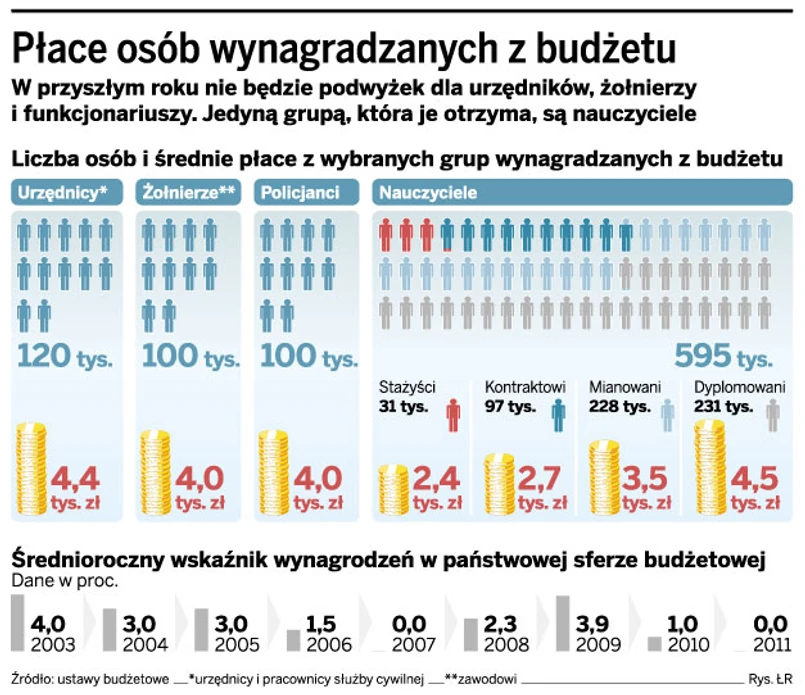 Dziś rząd przyjął założenia do budżetu na 2011 rok. Zgodnie z propozycją średniorocznych wskaźników wzrostu wynagrodzeń w państwowej sferze budżetowej w 2011 r. nie będzie wzrostu płac w tym sektorze.