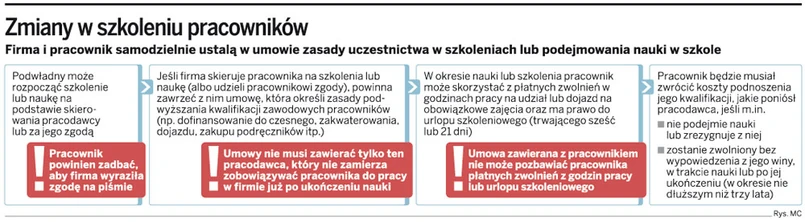 Firma budowlana zatrudniająca na przykład spawaczy i elektryków musi udzielać im sześciodniowych urlopów szkoleniowych za każdym razem, gdy odnawiają oni swoje uprawnienia do wykonywania tych zawodów – czyli odpowiednio co dwa i cztery lata. Tak wynika z nowych przepisów kodeksu pracy w sprawie podnoszenia kwalifikacji zawodowych pracowników, które weszły w życie 16 lipca. Przysparzają one problemy nie tylko firmom, ale też pracownikom. Muszą oni np. zadbać o to, aby pracodawca udzielił im wyraźnej zgody na rozpoczęcie nauki lub szkolenie.