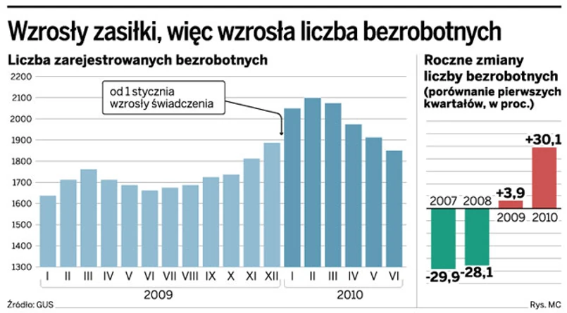 Zdaniem ekspertów szacunki GUS potwierdzają, że tegoroczny wzrost liczby bezrobotnych nie był tylko efektem sezonowej redukcji zatrudnienia. Fala bezrobotnych zalała urzędy pracy po tym, jak podniesiono świadczenie dla osób pozostających bez pracy.