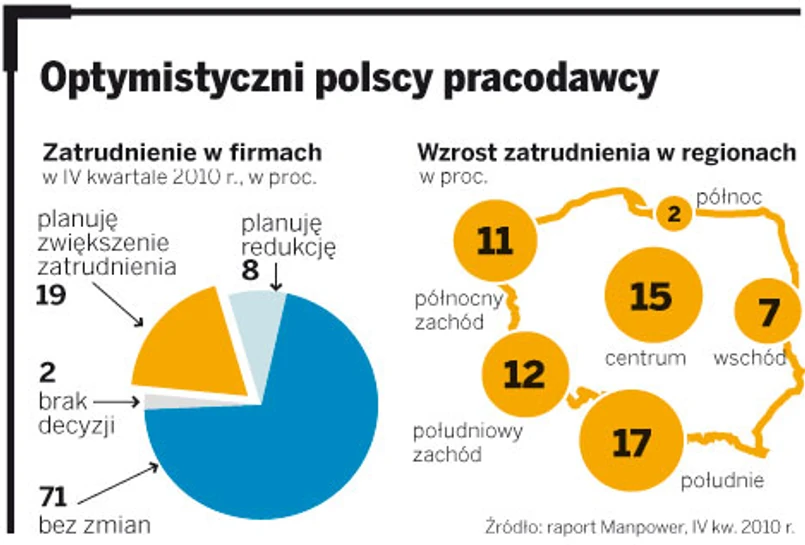 Według Manpower pod względem optymizmu Polska znajduje się w światowej czołówce. – W IV kwartale 2010 r. we wszystkich sektorach więcej pracodawców przewiduje zwiększenie zatrudnienia, a nie redukcje – mówi Iwona Janas, dyrektor Manpower Polska.